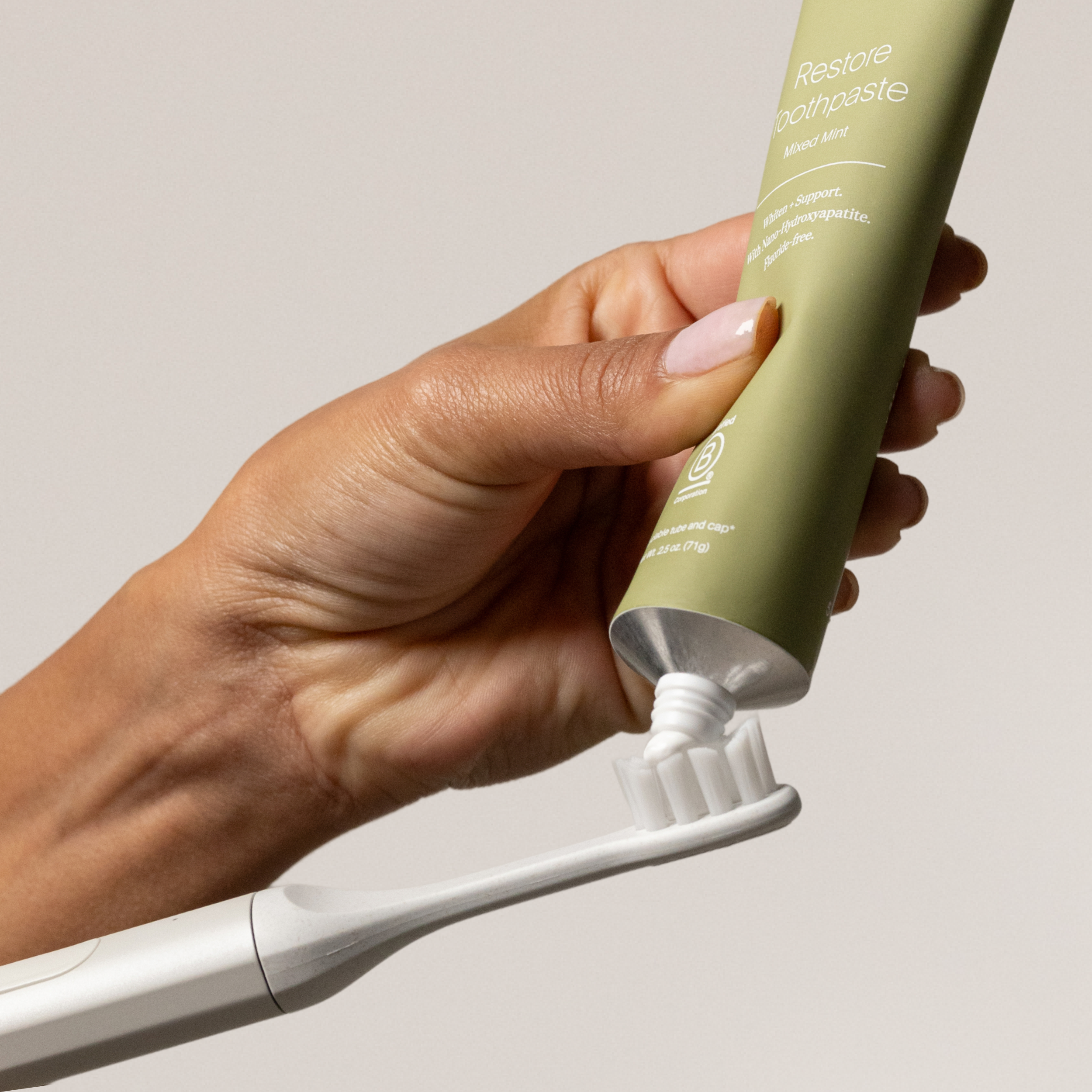 Revolutionary Restore toothpaste that repairs, whitens and strengthens — every time you brush.