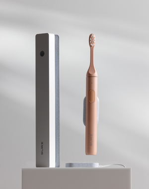 It contains a UV-C light which kills 99.9% of harmful bacteria in just one minute. And it will also charge your brush when it's plugged in.