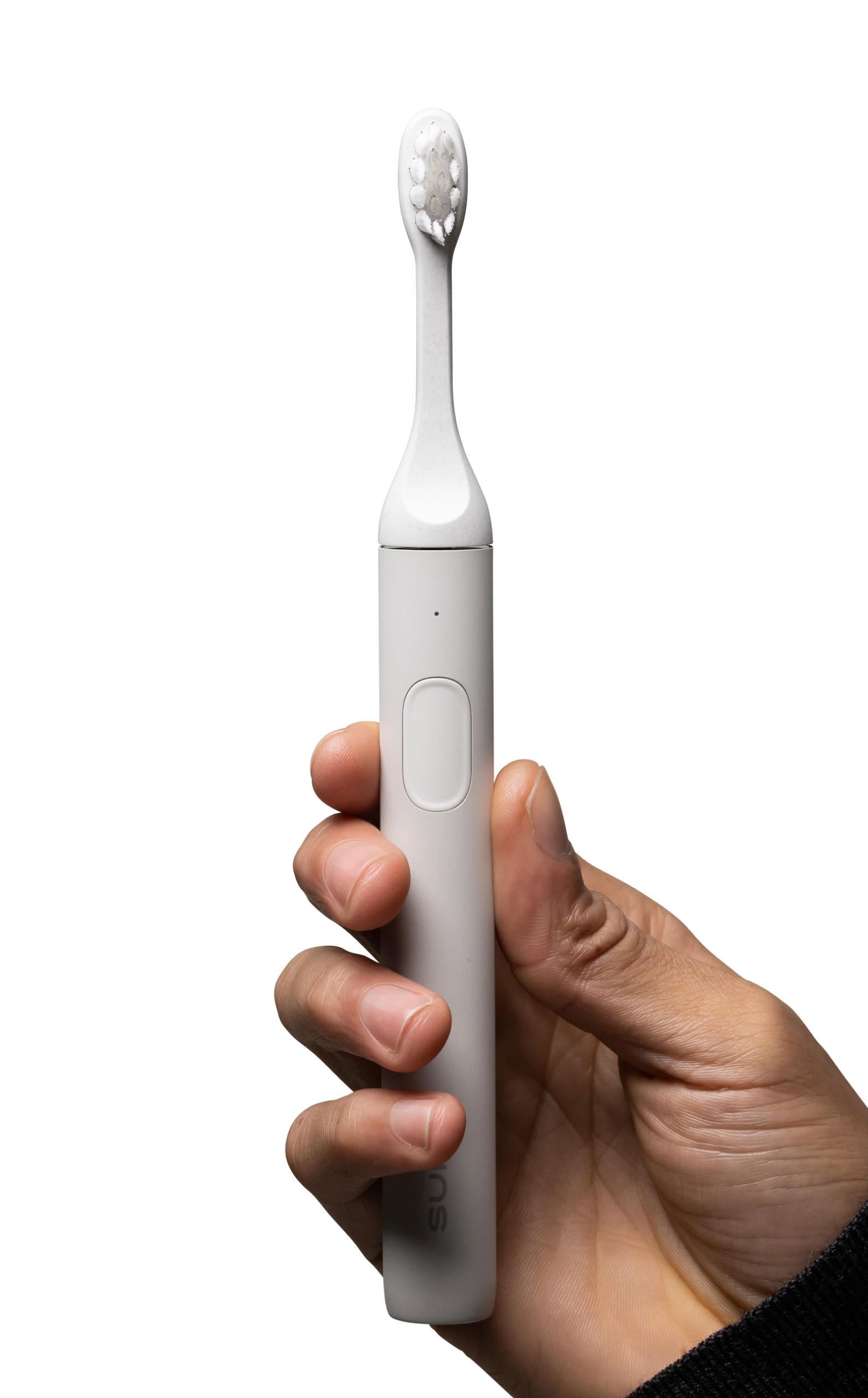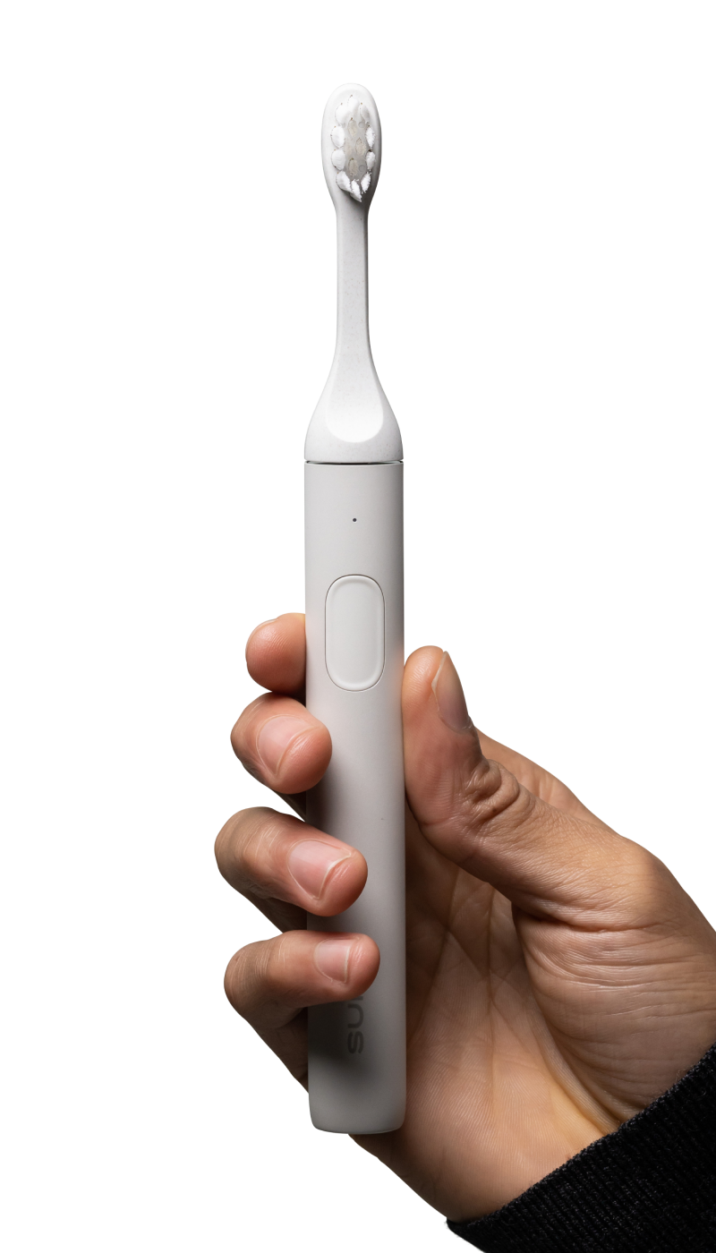 Our brush uses recyclable plant-based heads and bristles, the slim aluminium body is designed to be taken apart and repaired, all while delivering a dentist-approved clean.