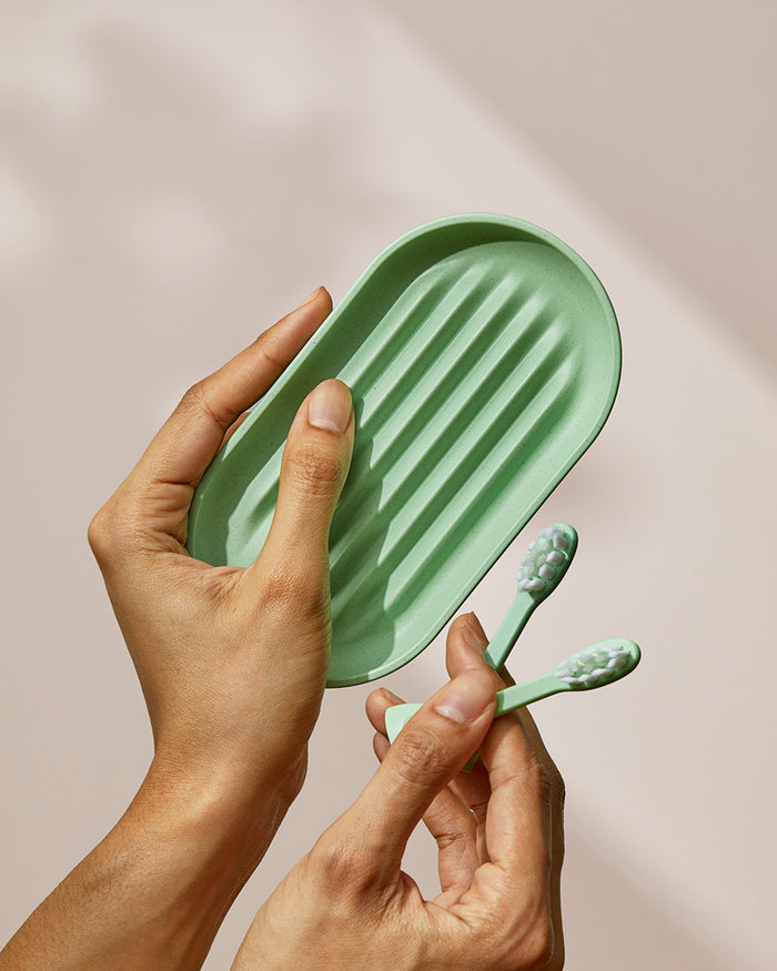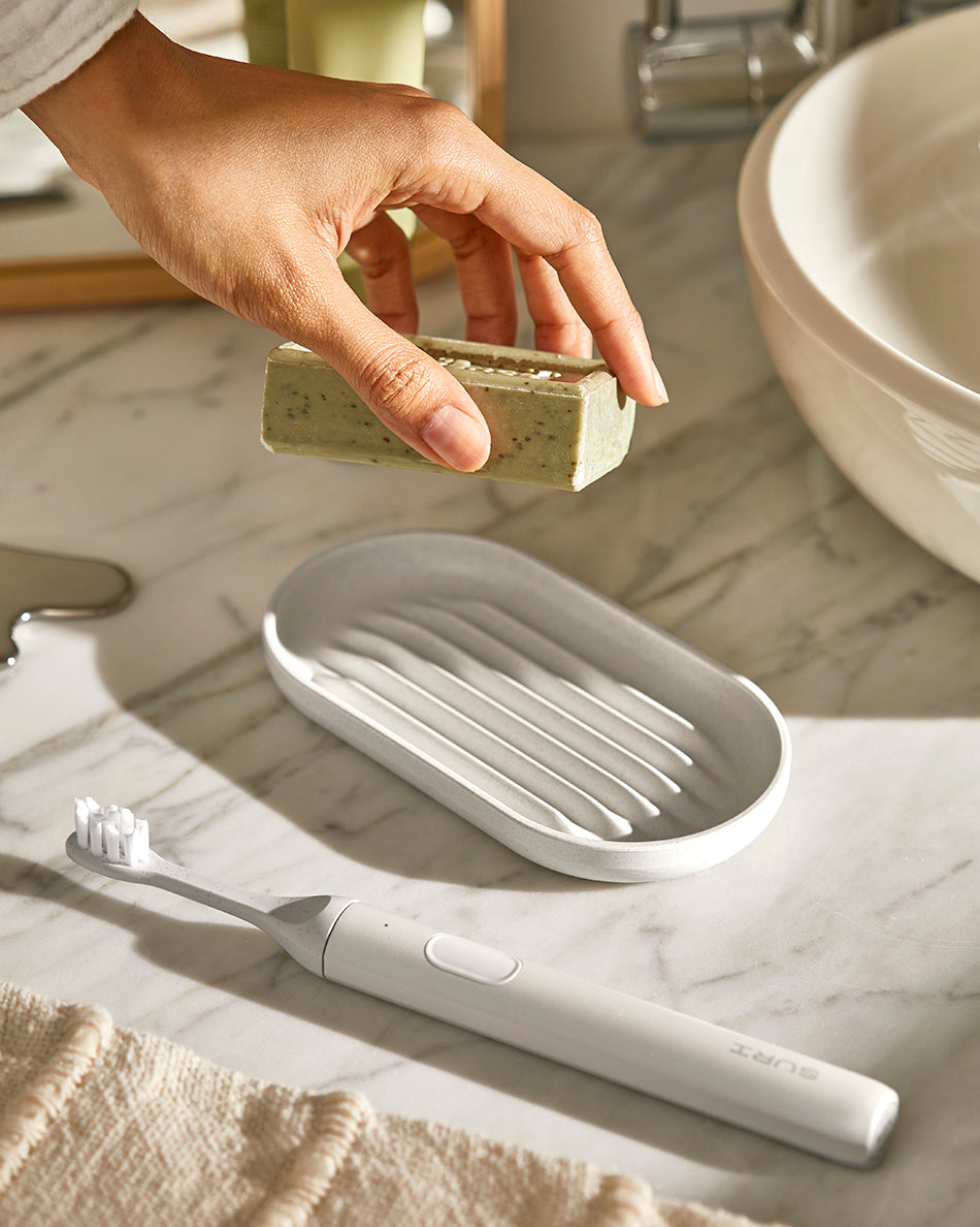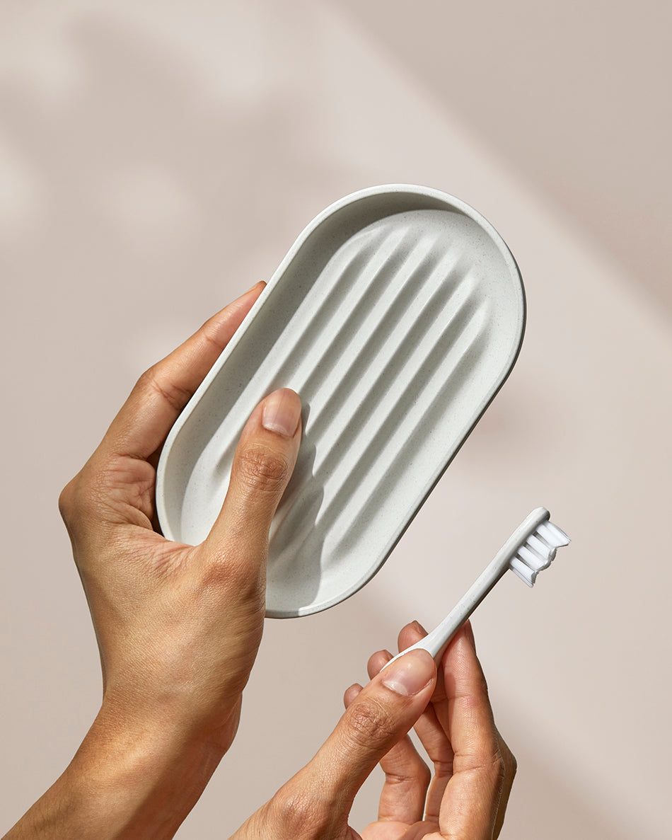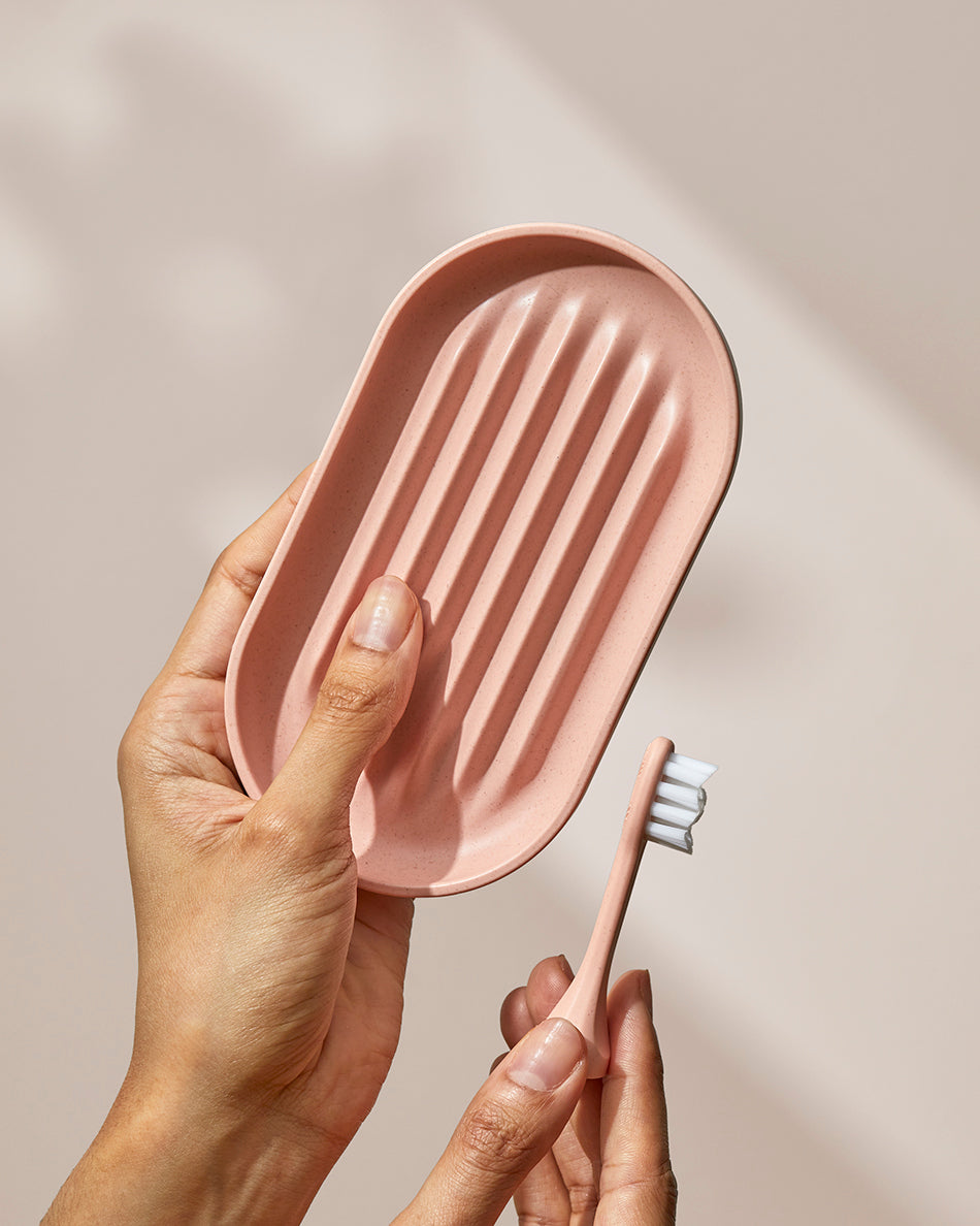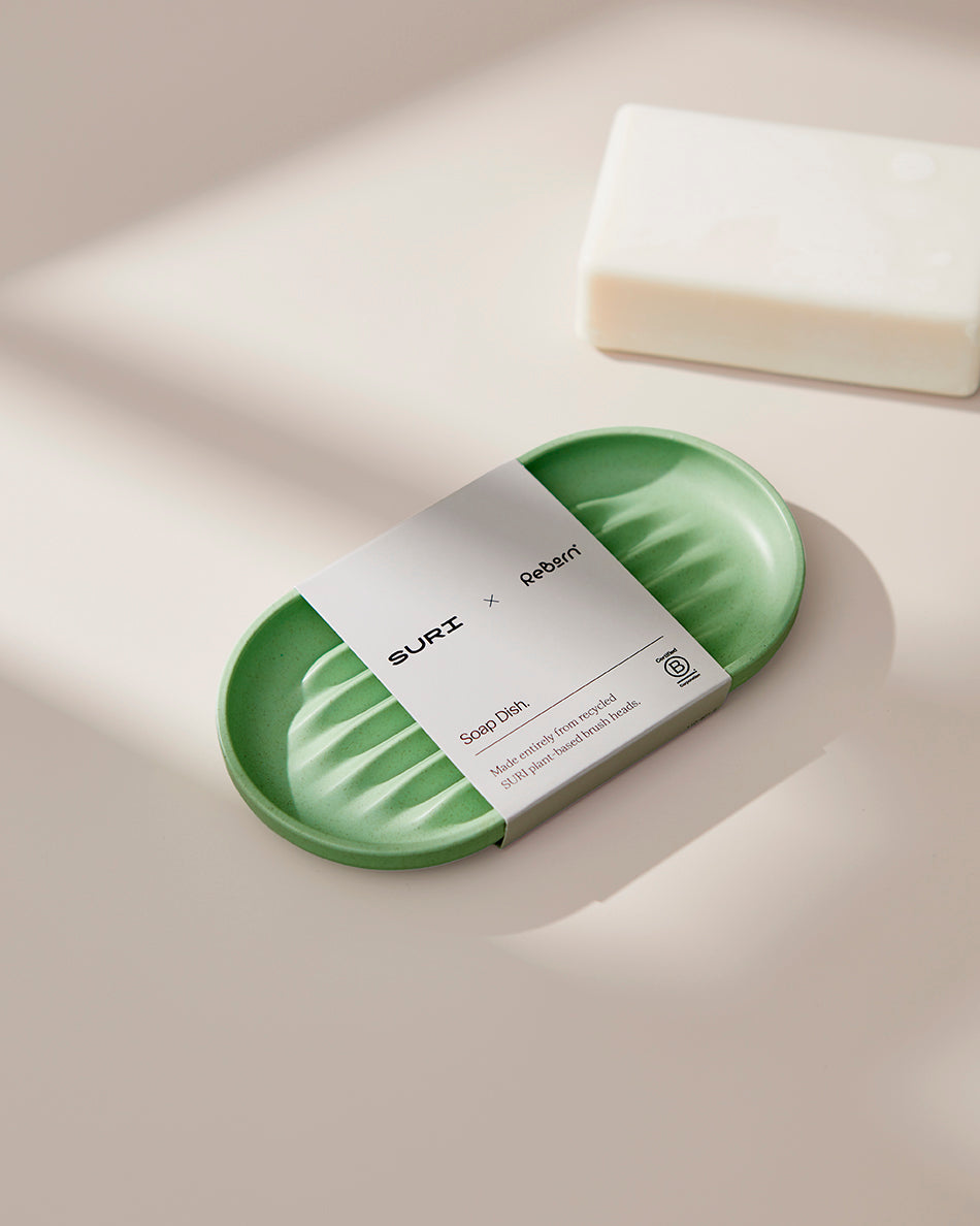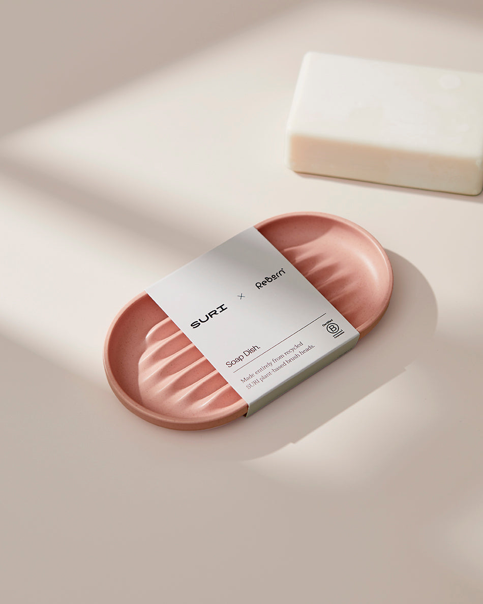 Since launching in 2022, our community has returned over two tons of used SURI plant-based brush heads through our free recycling scheme. We’ve partnered with Reborn to give these heads a second life as minimalist soap dishes.