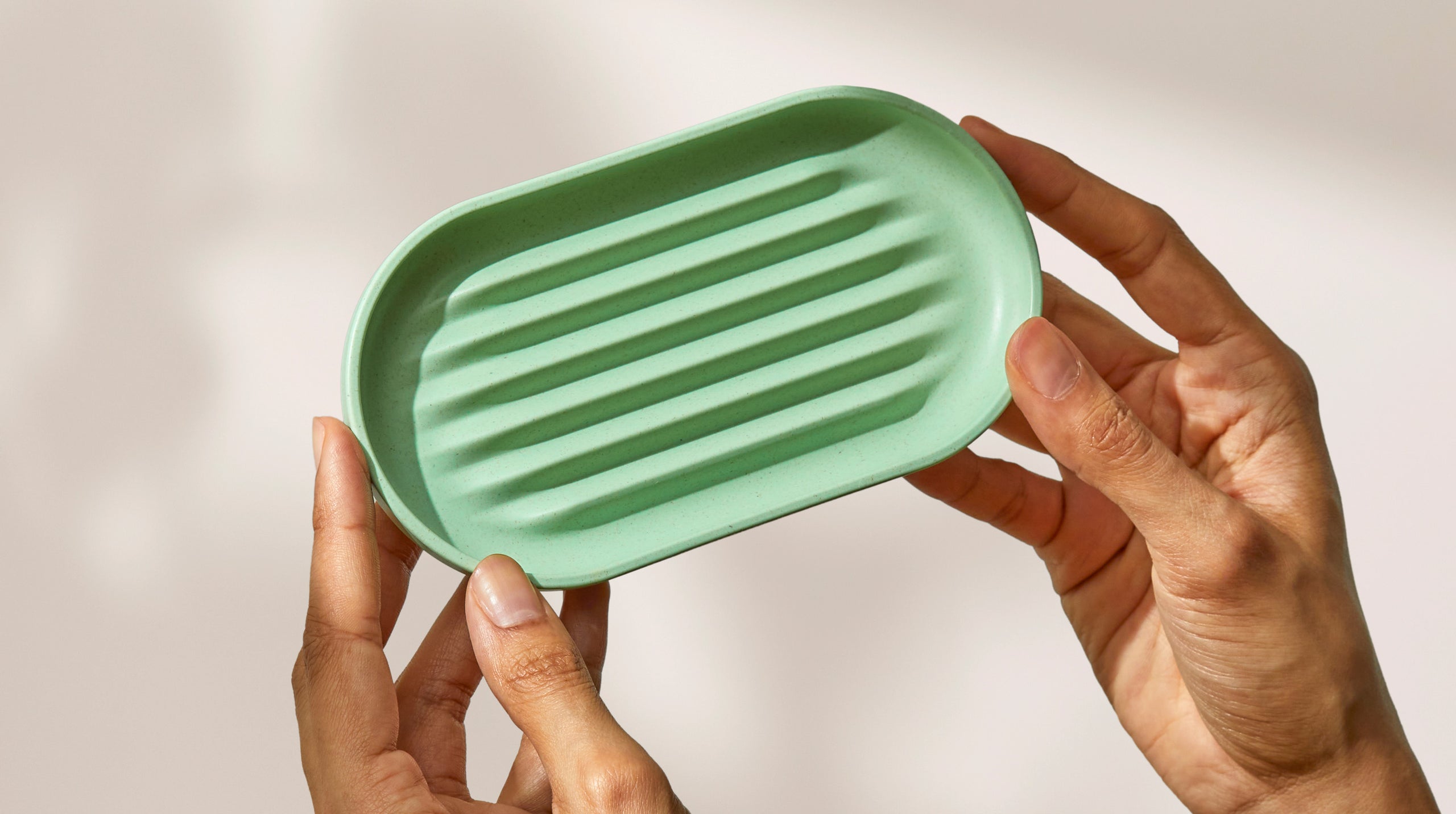 Made in the UK, each soap dish is made from eighteen returned brush heads, and due to subtle variations and natural imperfections in the material—no two dishes are exactly the same.