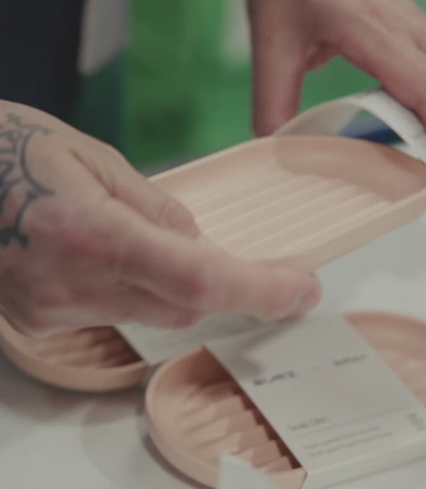 We partnered with Reborn in the UK, to help bring our minimalist soap dishes to life. Reborn is on a mission to transform the sustainability of the global homewares industry. They give waste a new life, reducing the need for virgin materials in everyday products.