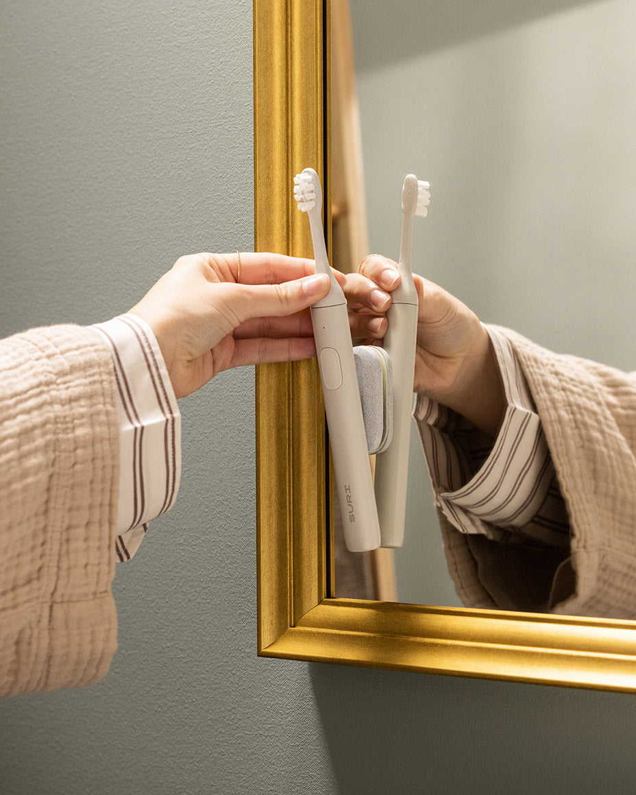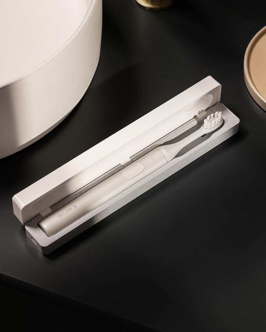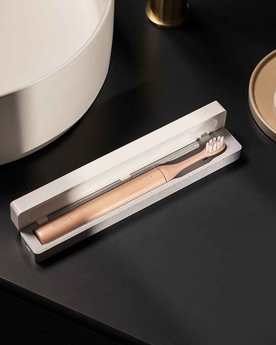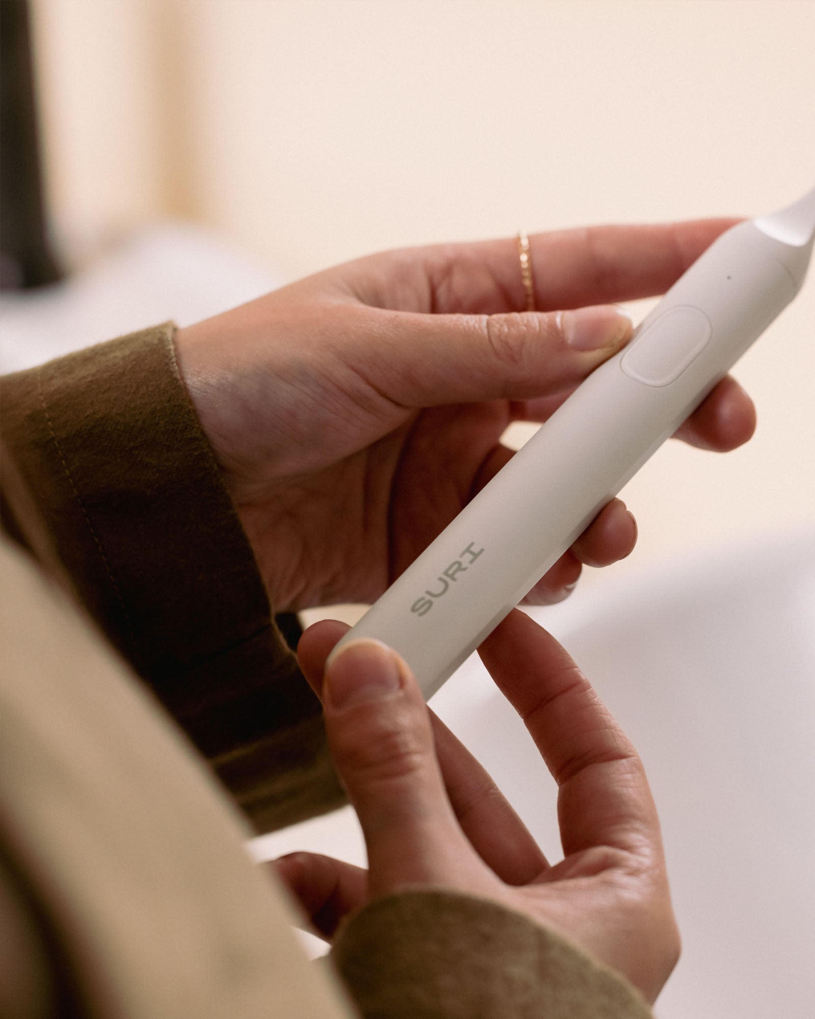 If you’re switching from an oscillating brush, you might notice that SURI feels gentler on your teeth and gums—but it’s still a super-effective, dentist-approved clean. In recent clinical studies, our toothbrush removed up to 5x more plaque than a manual toothbrush, and performed particularly well when cleaning hard-to-reach areas.
