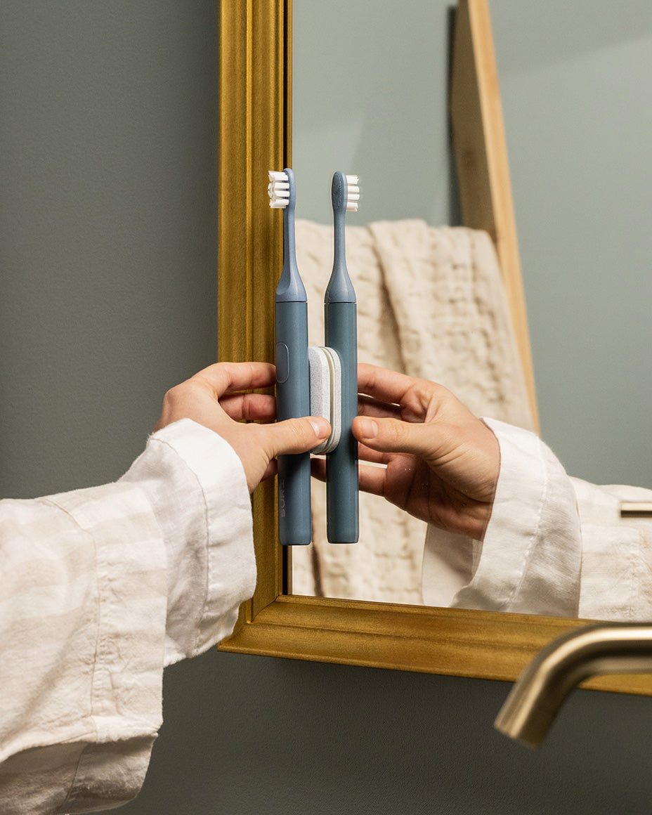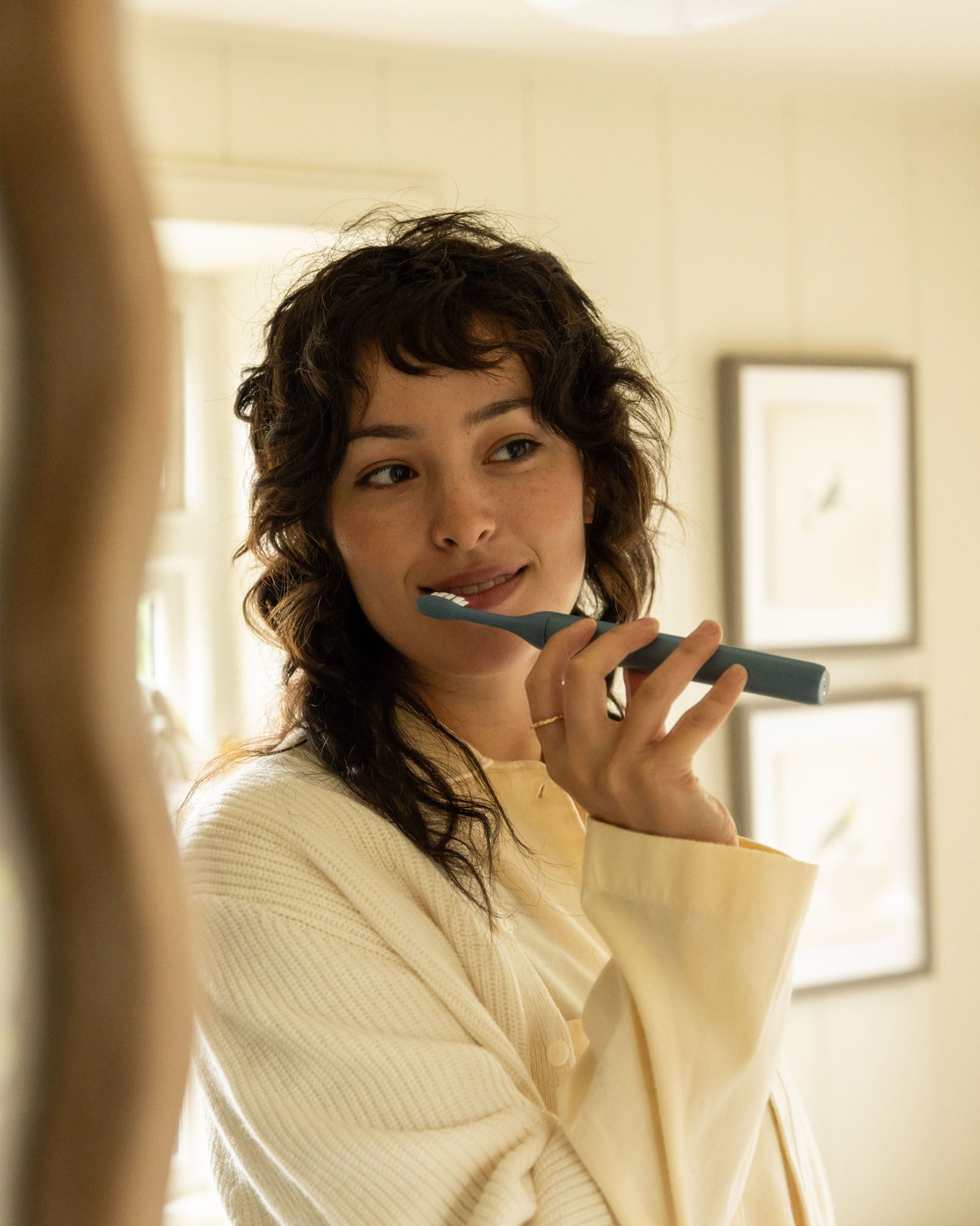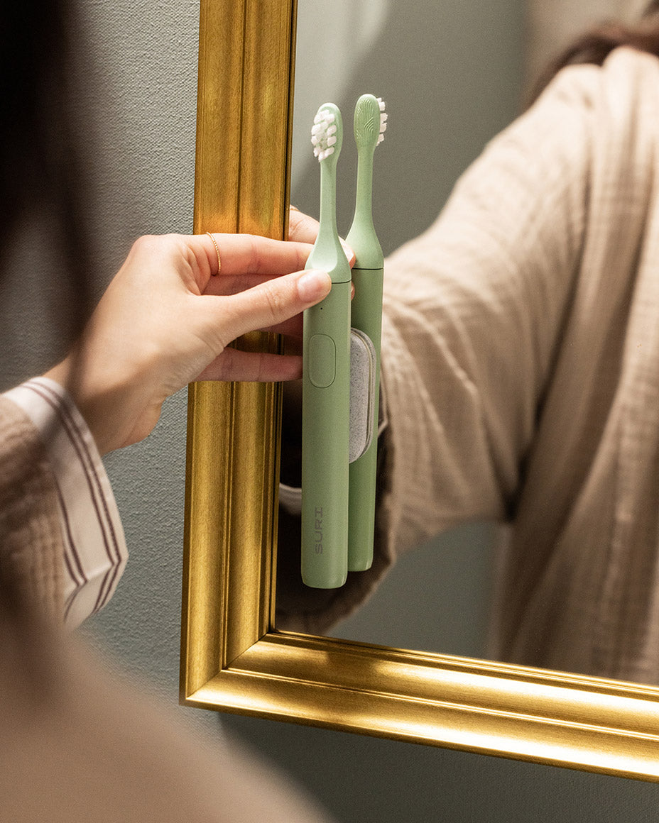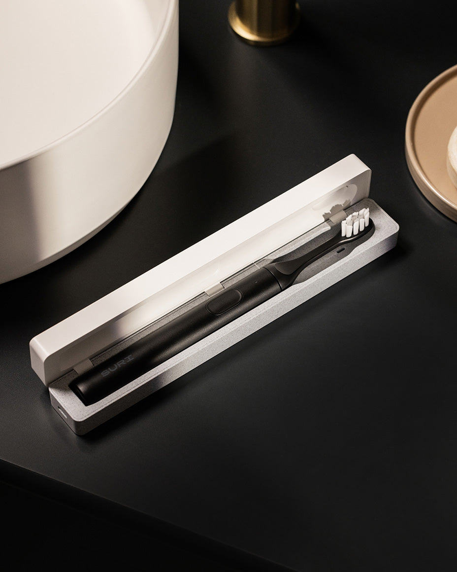 If you’re switching from an oscillating brush, you might notice that SURI feels gentler on your teeth and gums—but it’s still a super-effective, dentist-approved clean. In recent clinical studies, our toothbrush removed up to 5x more plaque than a manual toothbrush, and performed particularly well when cleaning hard-to-reach areas.