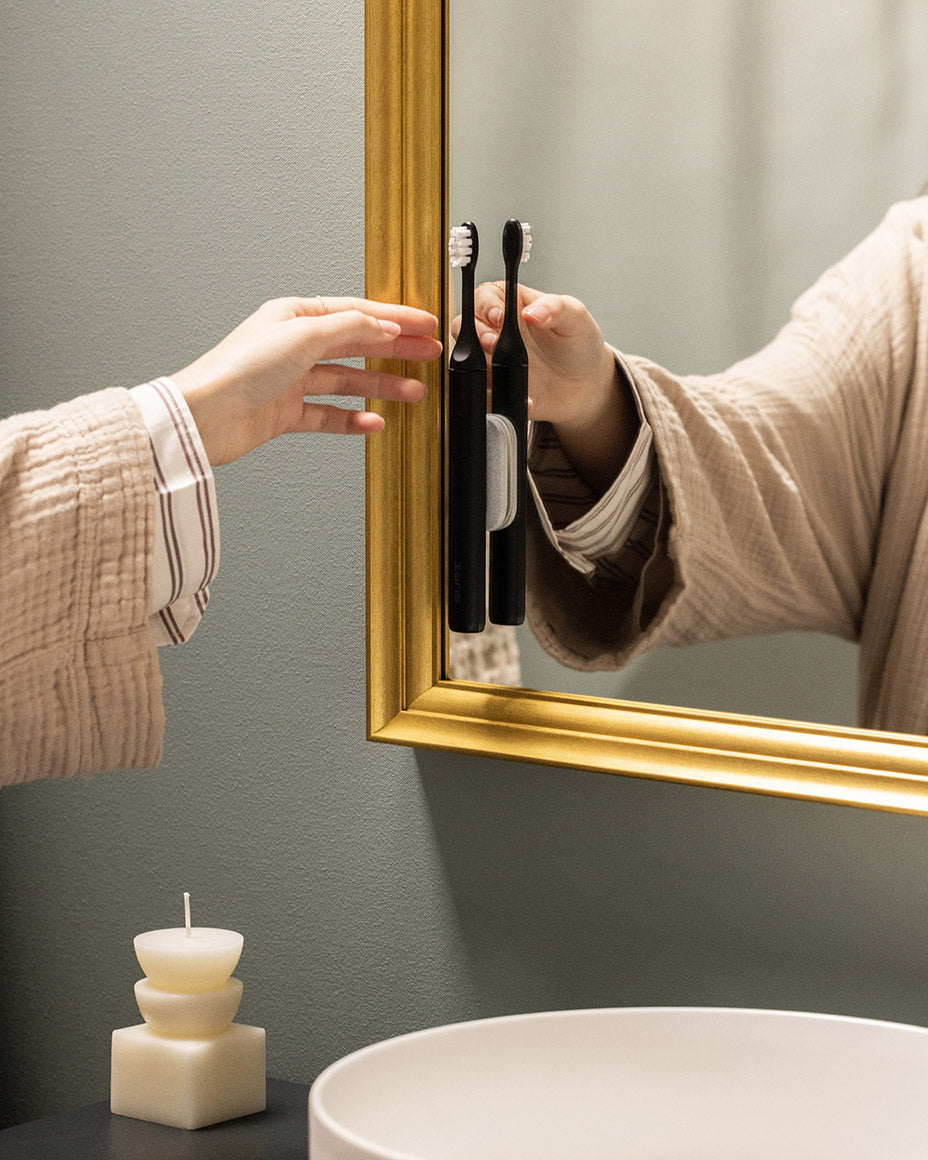 Attach your brush to tiles, mirrors, walls to keep surfaces paste- and gunk-free, leaving space for what truly matters.