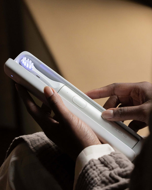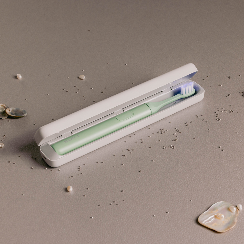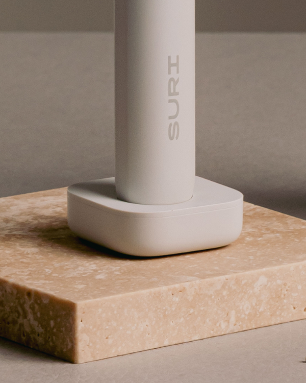 One charge. Over a month of brushing. Whether you're at home or away, SURI keeps going—so you don’t have to think about it.