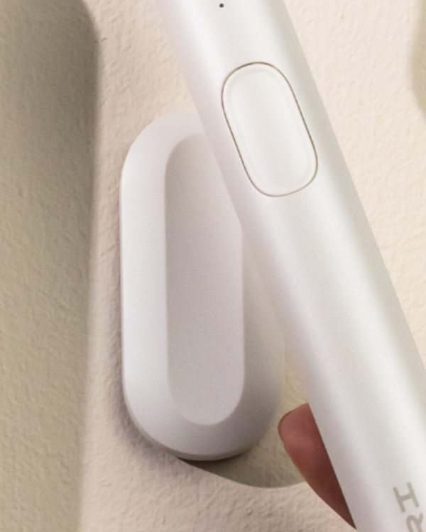 Reclaim your sink space. Easily attach your toothbrush to tiles, mirrors or walls and keep surfaces paste free.