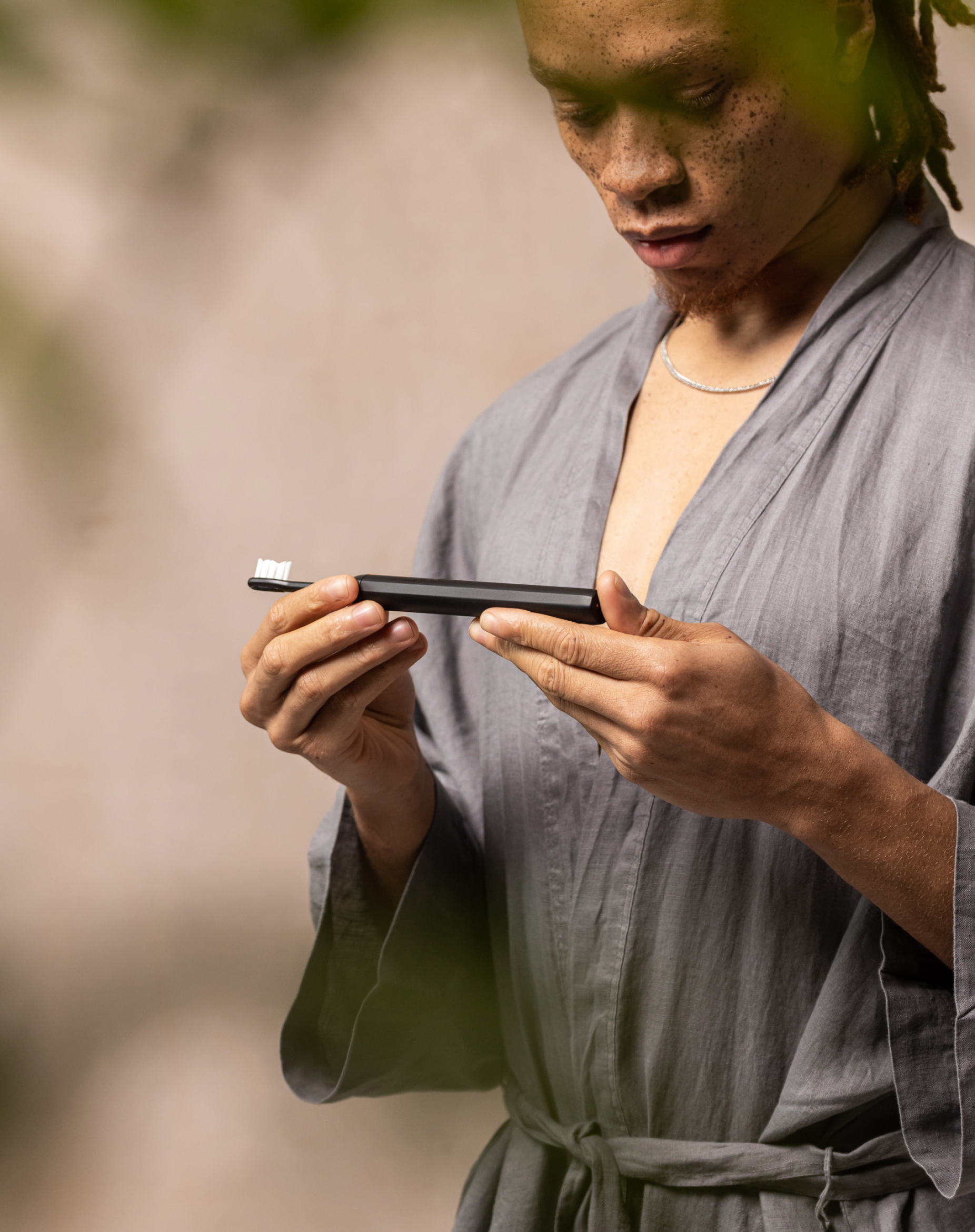 Our brush uses recyclable plant-based heads and bristles, the slim aluminium body is designed to be taken apart and repaired, all while delivering a dentist-approved clean.
