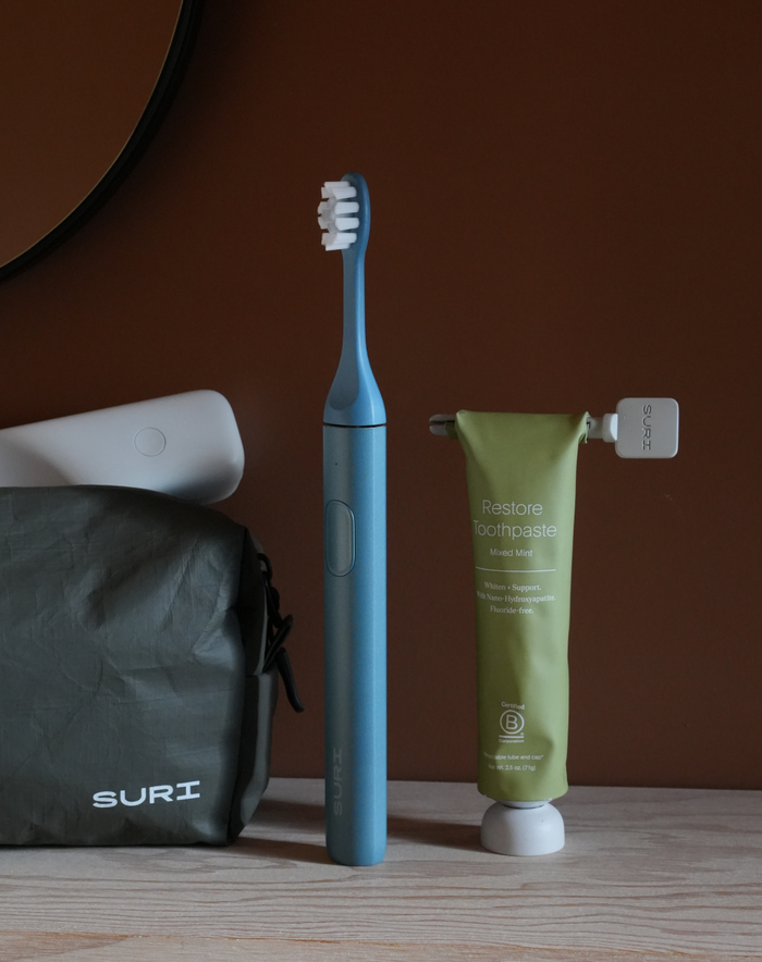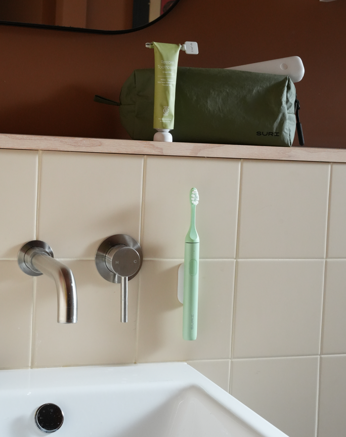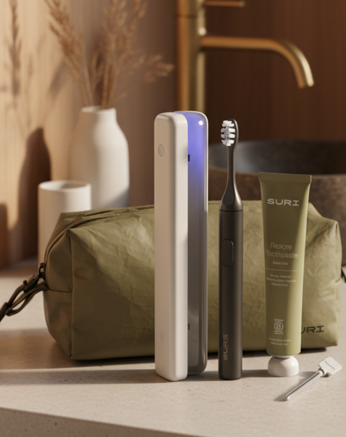 Roomy, lightweight, and designed to last. Stow your SURI toothbrush, paste and other travel essentials.
